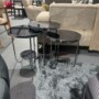 Each table stands on sturdy metal legs finished in polished or brushed silver, giving the set a modern, upscale appearance. These legs offer: