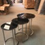 The Turkish Zigon Coffee Table, also known as a nesting or stacking table set, typically includes two or three side tables that neatly nest under one another. Each table features a round or oval top, supported by gracefully curved or tapered legs, often hand-carved with intricate Turkish motifs or geometric accents.